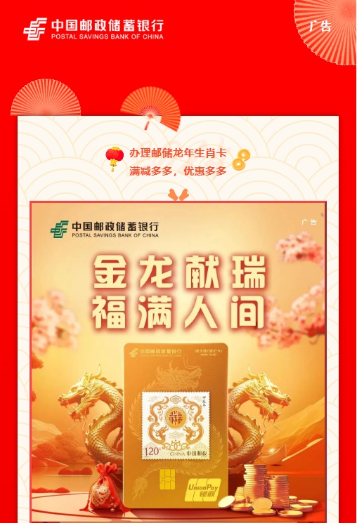 邮储龙年生肖卡,开启您的龙年新篇章!