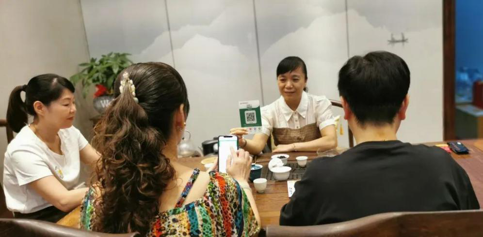 老板手执香茗,为我们精心挑选若干茶叶,带给亲友。结账时,桌上摆放着邮储银行的邮惠付收款码,商家介绍在邮惠付支付时可以享受随机立减,也可使用“邮储银行福建省分行”公众号的邮U惠平台积分兑换券,享受优惠。