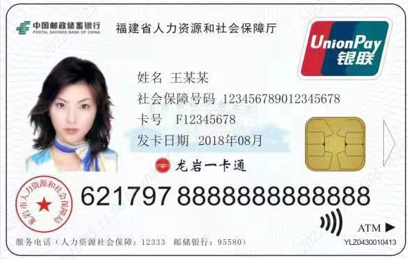 龙岩市第三代社会保障卡是邮储银行龙岩市分行与龙岩市人力资源和社会保障局合作发行推出的一张区域性金融IC卡,具有养老和补贴资金代发、现金存取、转账汇款、支付结算、医药购等功能的区域性借记卡。