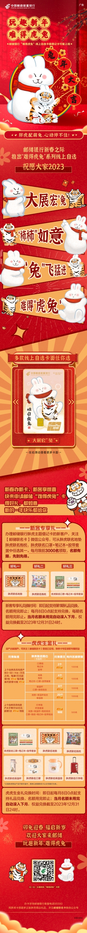邮储银行“难得虎兔”线上自选卡面借记卡可爱上线