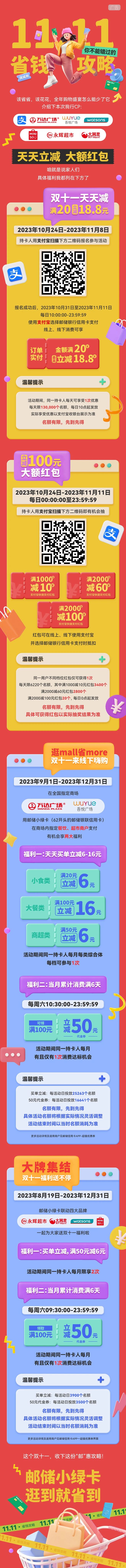 双11付尾款 用邮储小绿卡最高立减100元
