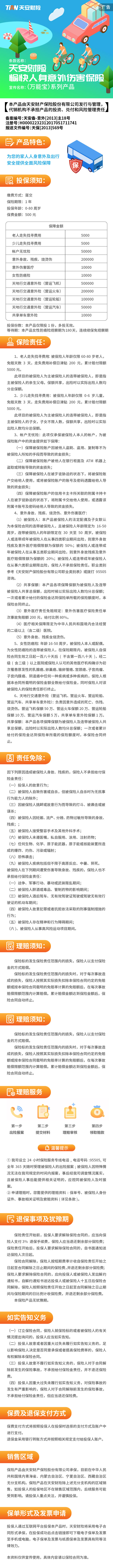 天安财险愉快人身意外伤害保险(万能宝)
