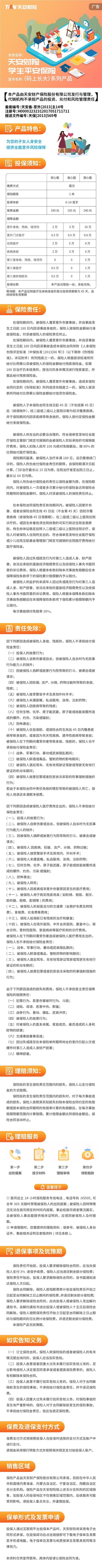 天安财险学生平安保险(码上长大安心版、省心版、放心版)