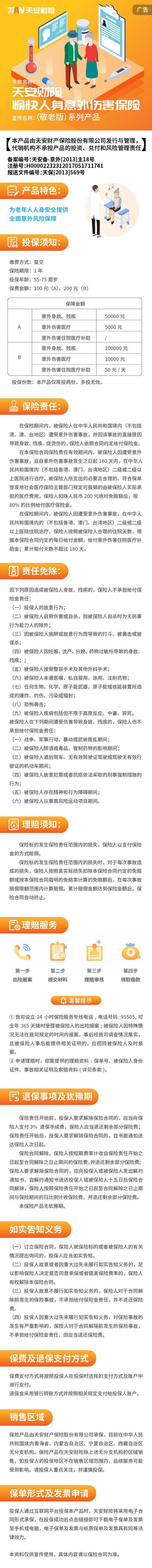 天安财险愉快人身意外伤害保险(敬老A款、B款)