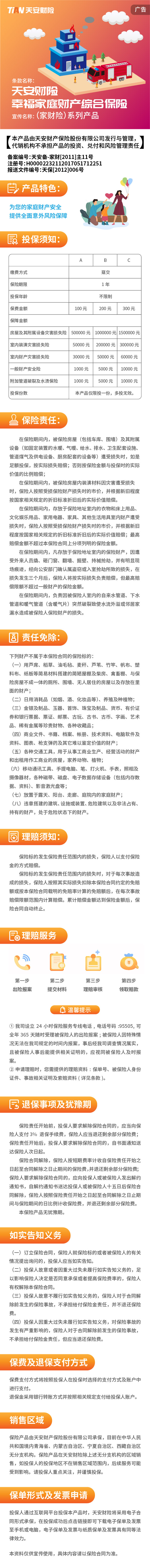 天安财险幸福家庭财产综合保险(家财A款、B款、C款)