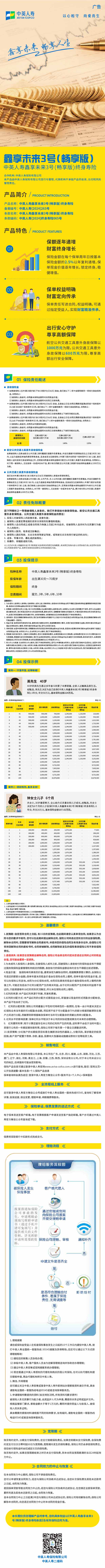 中英人寿鑫享未来3号(畅享版)终身寿险产品