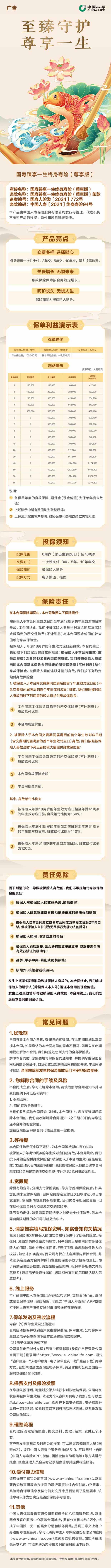 国寿臻享一生终身寿险(尊享版)