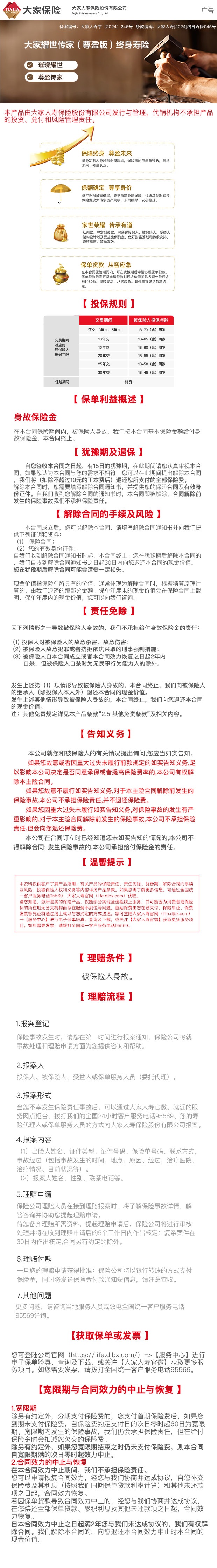大家耀世传家(尊盈版)终身寿险
