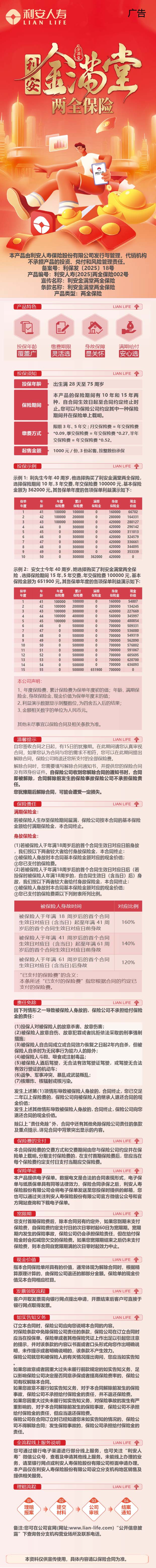 利安金满堂两全保险