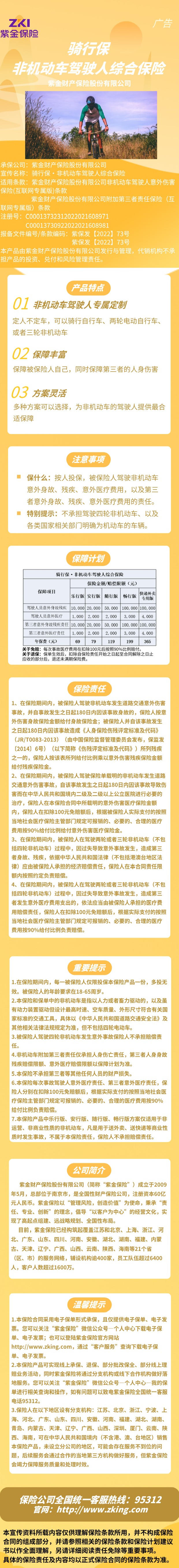 紫金财险骑行保·非机动车驾驶人综合保险