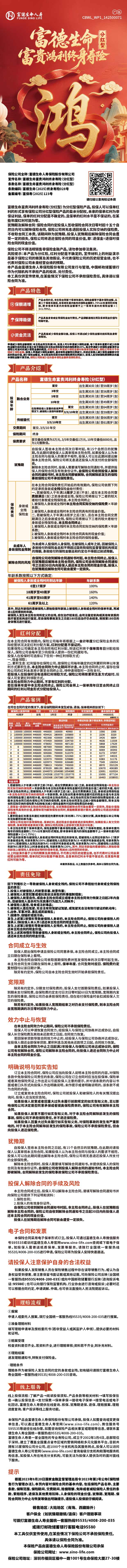 富德生命人寿富德生命富贵鸿利终身寿险(分红型)