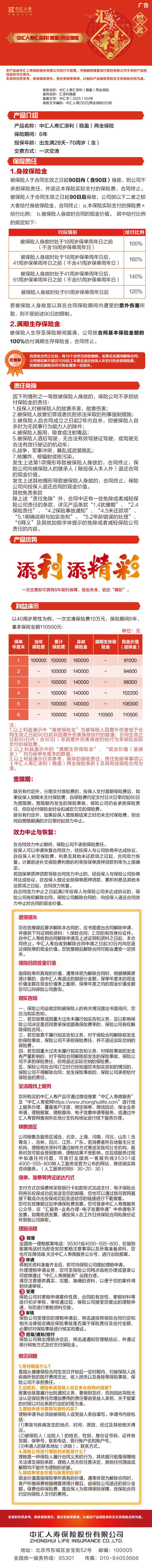 中汇人寿汇添利(稳盈)两全保险