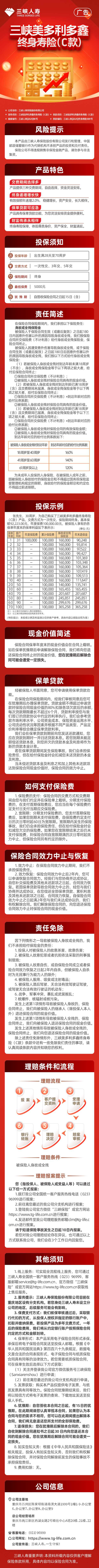 三峡人寿三峡美多利多鑫终身寿险(C款)