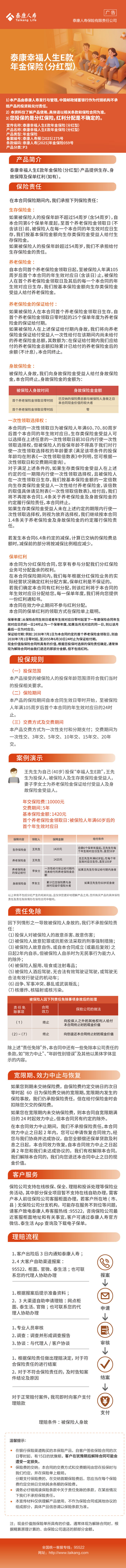 泰康幸福人生E款年金保险(分红型)