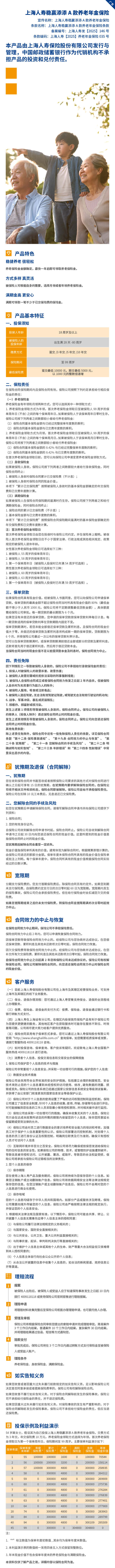 上海人寿稳赢添添A款养老年金保险