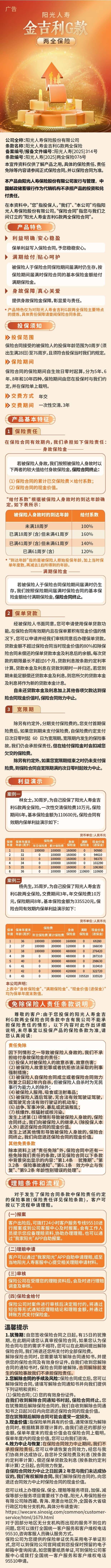 阳光人寿金吉利G款两全保险