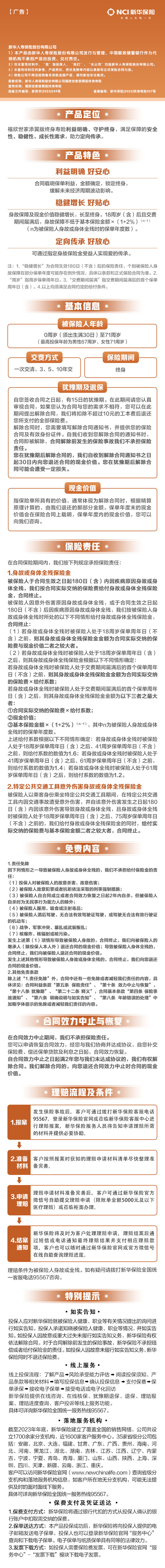 新华保险福欣世家添翼版终身寿险