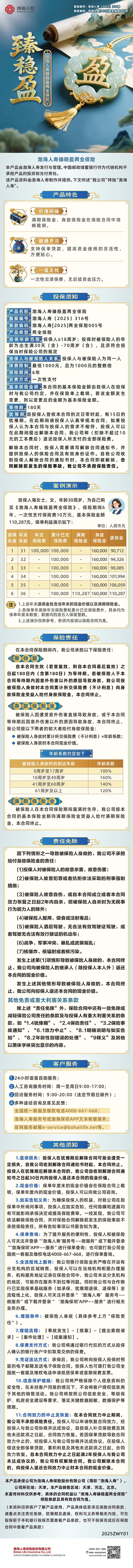 渤海人寿臻稳盈两全保险