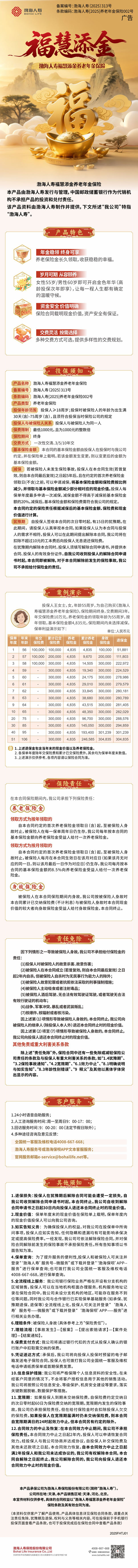 渤海人寿福慧添金养老年金保险