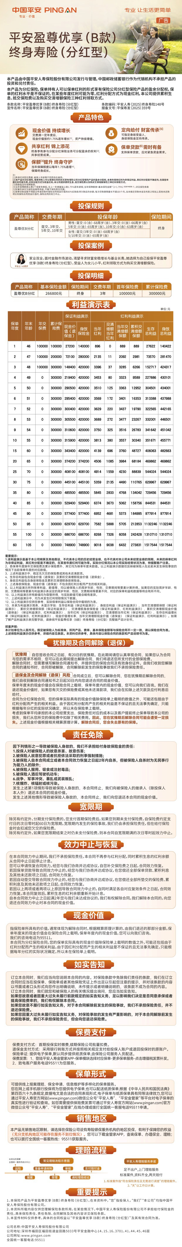 平安人寿平安盈尊优享(B款)终身寿险(分红型)