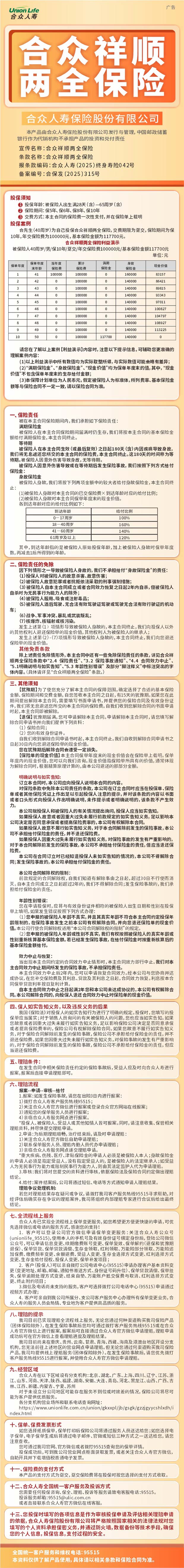 合众祥顺两全保险