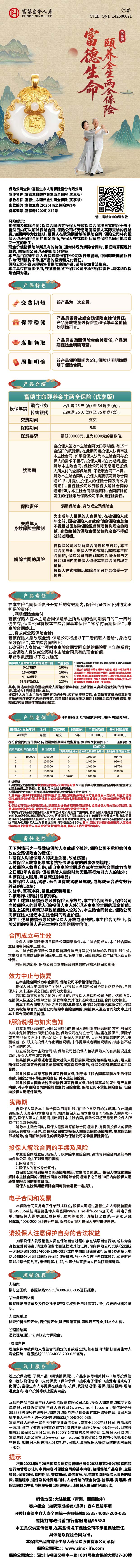 富德生命颐养金生两全保险(优享版)