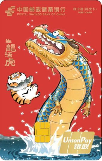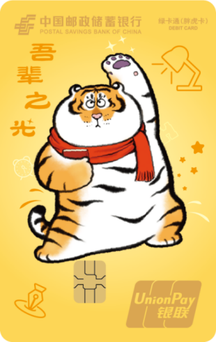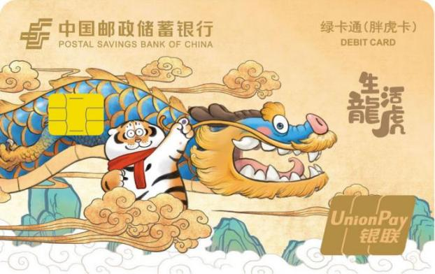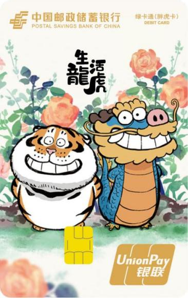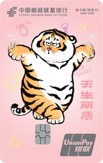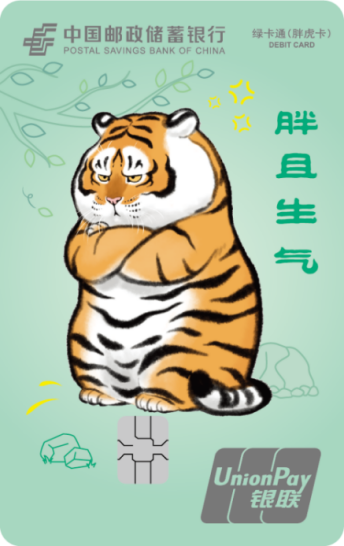 胖虎卡是中国邮政储蓄银行联合IP“我不是胖虎”,设计发行的全国性联名借记卡产品,该系列卡产品共17个版面,包括16款标准版面、1款异形卡面(各网点具体发行卡面,以各发行渠道信息为准)。该系列卡产品可提供我行标准绿卡通 IC 卡全部金融服务功能。同时,客户开户激活、消费达标、资产达标及业务加办等符合条件时可获得老虎邮进行衍生品或云闪付红包等权益兑换。
