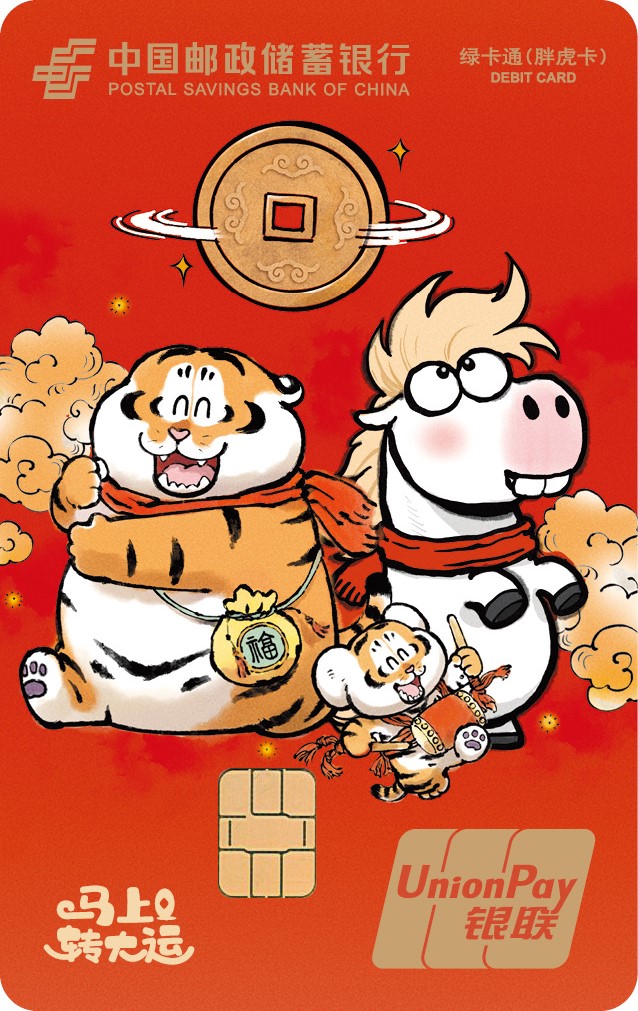 胖虎卡为客户提供新客礼(首次办理胖虎卡)、生日礼、邀请礼、资产升级礼、签到礼等。客户开卡并扫描卡背面二维码,关注“邮储联名卡”公众号——进入“胖虎卡权益”专栏,进行激活与绑定,首次办理胖虎卡有机会领取新客专享礼,后续完成指定任务后可获得老虎邮,有机会领取正版胖虎专属周边衍生品、云闪付红包等丰富权益。活动持续更新,权益不断丰富,请关注“邮储联名卡”公众号查看详细规则及领取权益。