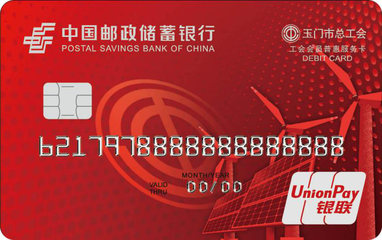 “玉门市工会会员普惠服务”联名卡是由玉门市总工会联合邮储银行为全市工会会员精心打造的专属服务卡,具有工会会员身份识别和金融服务功能,享受工会服务、商家特惠等权益。