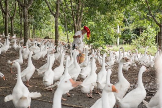 肖发基和哥哥肖发张是海南省琼中县湾岭镇的一对黎族兄弟。兄弟俩自2011年开始养鹅,场地就在家门口的橡胶树林和旁边的小鱼塘,他们举全家之力一年只能养1600多只小鹅,虽然逐年在扩大规模,但是没有外来资金帮扶的情况下,很难发生大的变化。