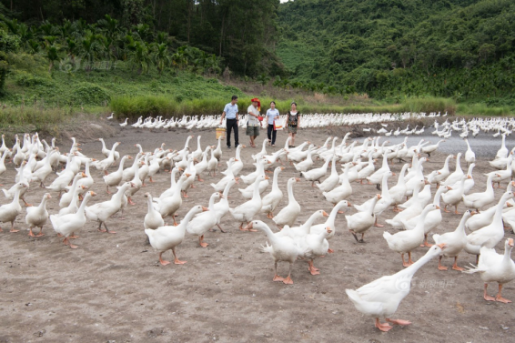2014年的一天,肖发基的妻子在邮储银行办理业务时听说了农户联保贷款的金融产品后,流露出想要贷款的想法,没过几天,邮储银行海南省琼中县支行信贷员王德旺和同事们就来到他们的鹅场,帮他们办理好贷款手续,很快他们就拿到了扩大生产的资金。经过当地政府和邮储银行几年来的支持,肖家的鹅场已经扩大成为三个基地,年产出7万只左右,销售额近800万元。在自己发家致富的同时,肖家兄弟还带动村里21户贫困户,实现了脱贫。