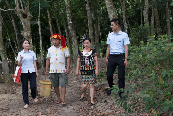 8月26日,邮储银行海南省琼中县支行信贷员杨雪玲和同事在肖发基的鹅场走访。琼中多山,养鸡场、养鹅场,都在山里。雨后的山路崎岖泥泞。经常下乡的信贷员,非常熟悉这些环境,爬得了山,跳得过沟,喂得了鹅。
