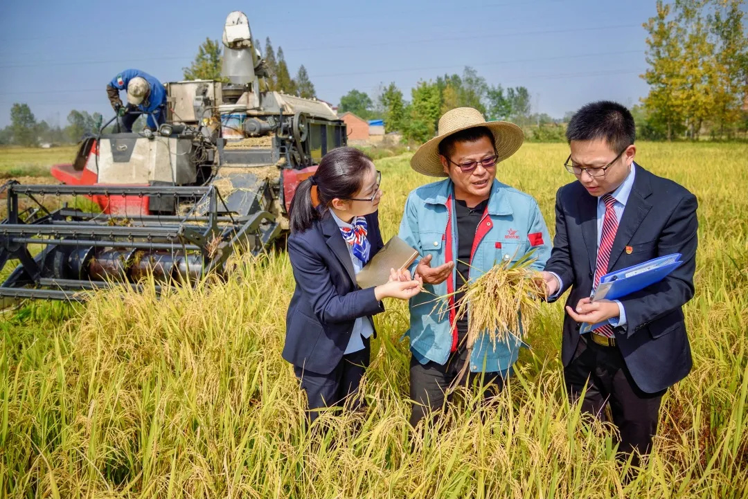 邮储银行安徽省马鞍山市分行信贷客户经理深入田间地头,服务“三农”客户,服务乡村振兴战略,图为信贷客户经理走访农业大户,共享丰收的喜悦。