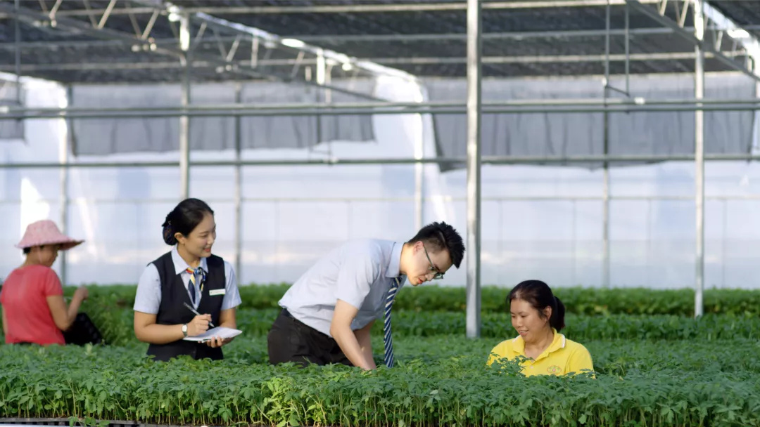 邮储银行厦门分行客户经理走访种植户,为其送上金融服务。