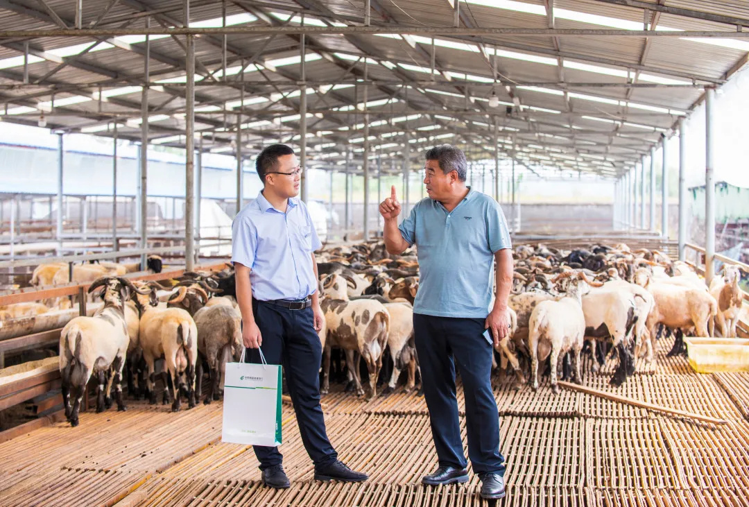 邮储银行安徽省砀山县支行客户经理走访许庄回族特色村养殖户,为育肥羊“贷”去好政策。
