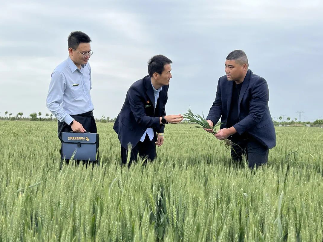 邮储银行山东省淄博市桓台县支行客户经理走访众鑫农业专业合作社规模种植麦田