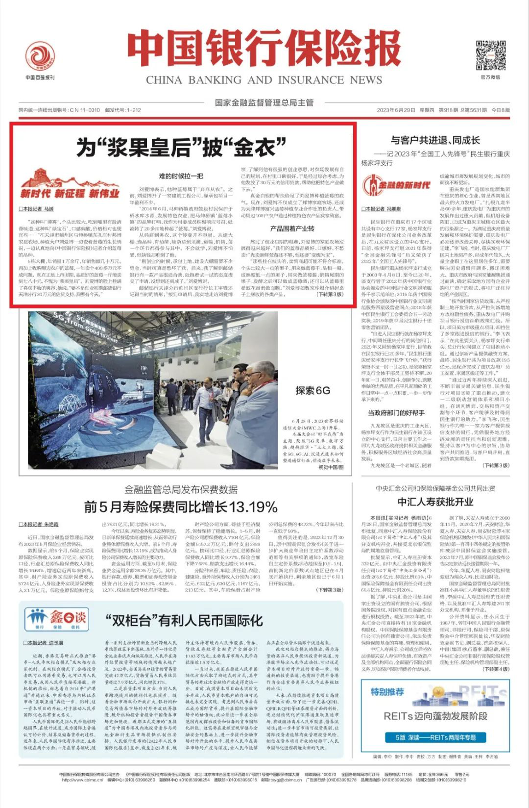 近日,《中国银行保险报》头版头条刊发报道《为“浆果皇后”披“金衣”》,对中国邮政储蓄银行天津分行金融助力蓝莓产业进行了报道。