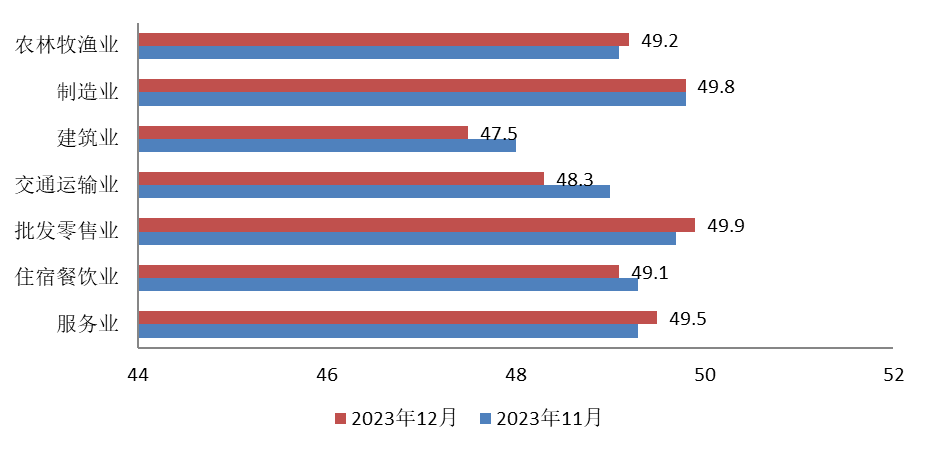 2023年12月份,“经济日报-中国邮政储蓄银行小微企业运行指数”(见图1)为49.4,与前月持平。自10月以来,总指数已经连续三个月运行于收缩区间。但本月结束了自8月以来连续下降的趋势,说明小微企业整体经营状况的变动企稳。